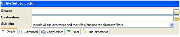 After That Select the Source Folder which contain your important data and destination folder where you have to take backup which in our case would be flash drive. The Third option is Sub-dir which gives you an enhanced selectivity menu so that you can set permission for each individual file and leave behind the not so important data