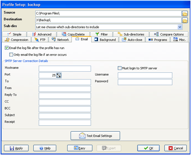 The Other Important feature is Email Notifications so that you can know that the Backups you had scheduled are completing successfully or not. To do this just Hit the Email Tab and enter your email details so that you know the status of your backups.
