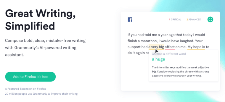 If you are looking for a tool that can give you suggestions at every social media account and improve your writing skills then Ginger is the best option for you. It does all the basic functions of a grammar checker and can also be used in translating the text in 50 other languages.