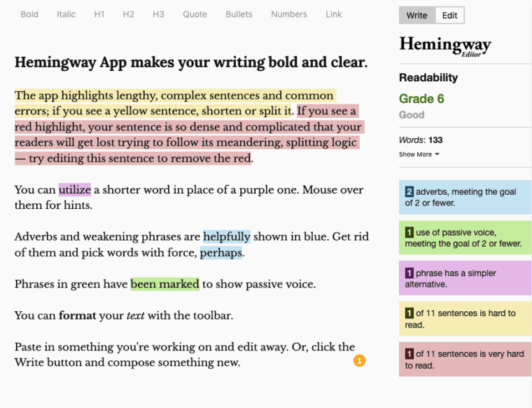 1. Hemingway App