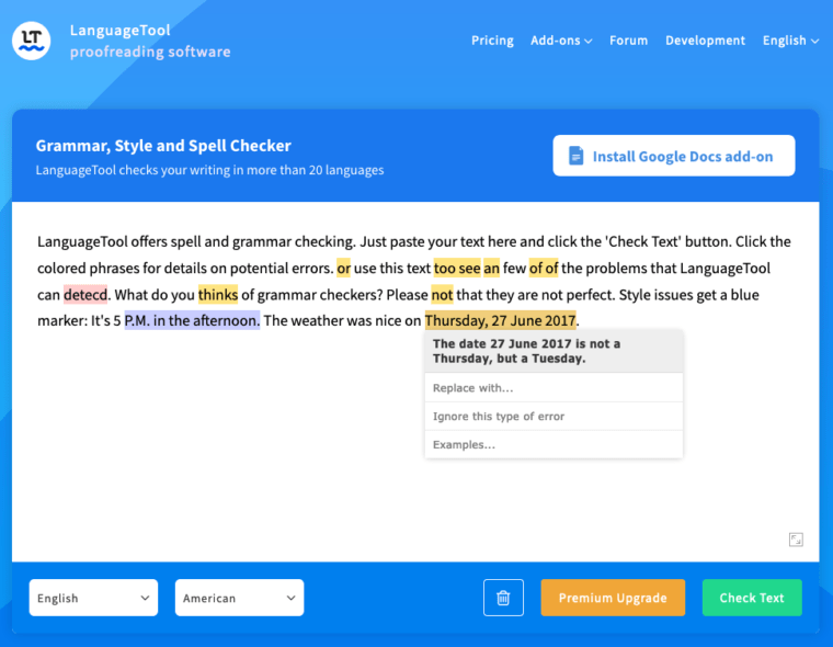 Language tool is another grammar checker that allows users to write error-free writing. It is also available for English as well as the German language. You can simply paste your content on the app and correct your highlighted mistakes.