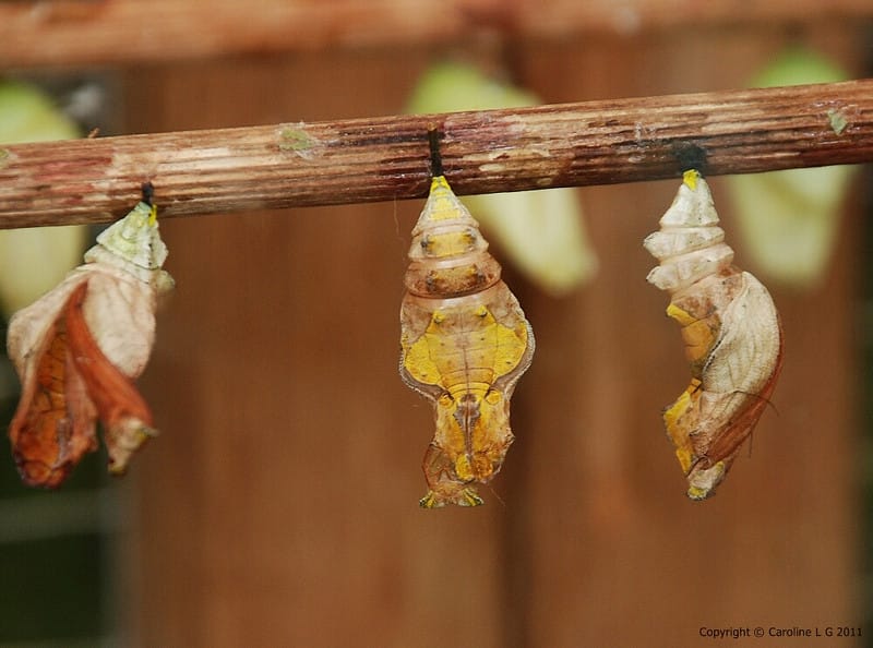 - Contrary to popular belief, most butterflies do not spin cocoons. Most butterflies form a chrysalis instead, which is a hard protective shield. It is mostly moths which spin cocoons.