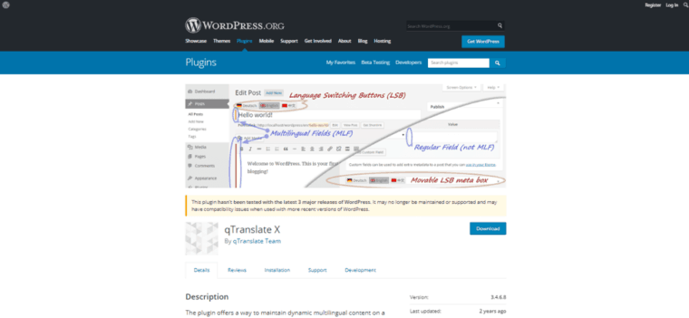 qTranslate X is a powerful plugin that is free of cost. It is a multilingual plugin. The functionality is the same as the previous two plugins defined. It helps you to create multilingual content easily.